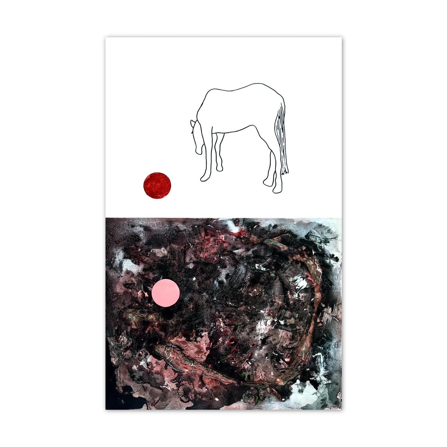 The Horse | 2022 | acrylic, spray paint, dye, & paper collage on panel | 48 x 30 inches
